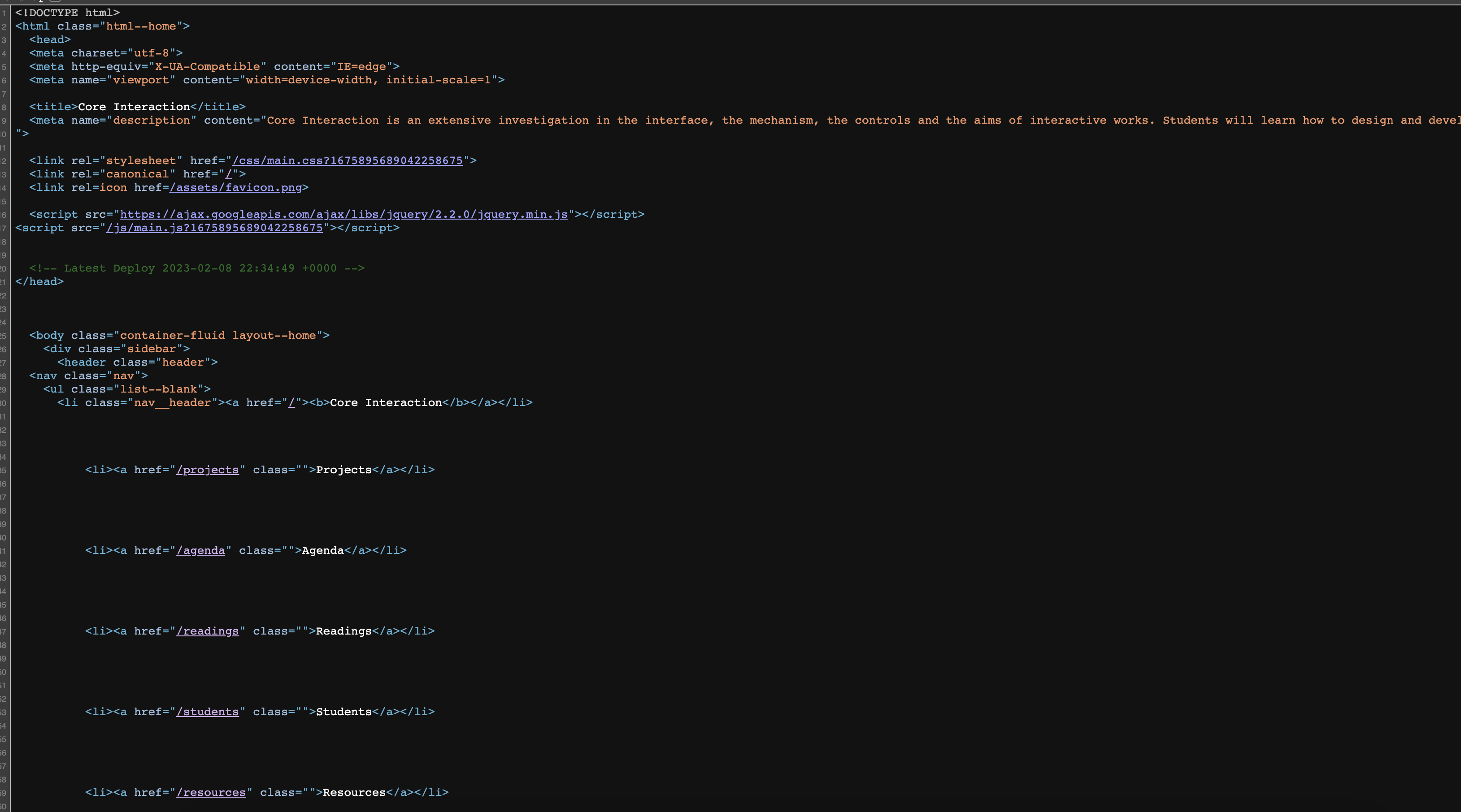 The code starts with which lets the computer know what kind of code it's looking at. The main part of the code is inside and that's where all the content for the website goes. The code also has a